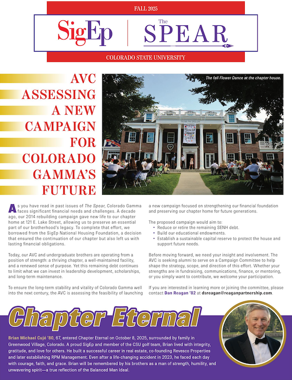 The Spear is a vital communication link in connecting all of Colorado Gamma brothers. However, printing and mailing a physical newsletter puts a tremendous financial burden on the chapter, totaling more than $6,000 a year.
